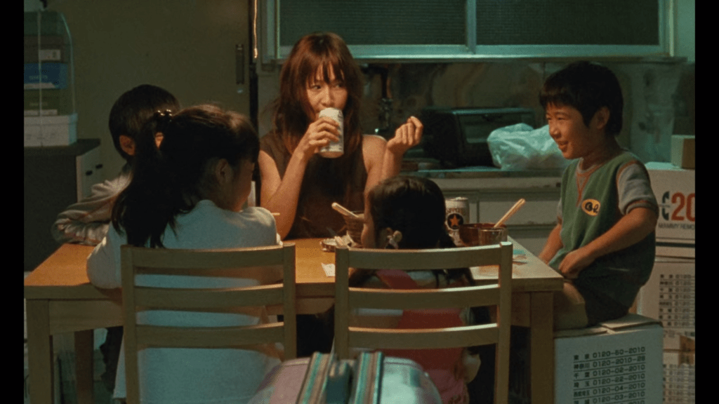 明與京子比其實是很成熟且負責的哥哥姊姊 ,至少跟他們生母相比;明請超商店員偽造媽媽的文筆,給弟弟妹妹發新年紅包、弟妹生日也不忘買蛋糕回去,京子則將積蓄已久的鋼琴錢捐出來,時刻安撫的年幼的小妹,但生活的負荷就連成人也不見得頂得住,更何況是該無憂歡笑的兒童。