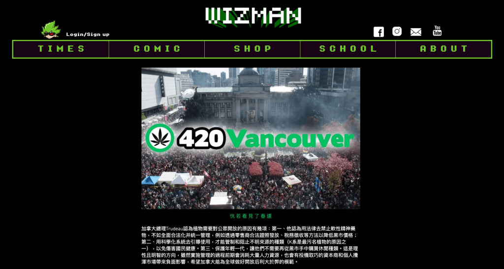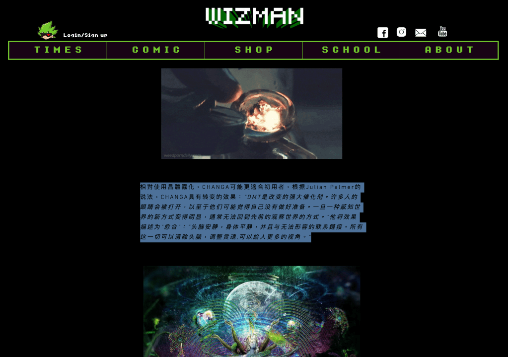 而談到他們在地球上最嚴峻的地方宣揚並推廣大麻文化,無疑是值得大家獻上最高敬意的壯舉!大飛社目前擁有推廣次文化的入口網站 wizman420.com 以及官方商城 www.wizman710.com 此外也有經營淘寶以及 Instagram、微信公眾號等自媒體平台;與我們的共通點可說皆是透過販售周邊商品並撰寫文章、製作影片來推廣分享音樂以及420相關文化等結合志向與科普的經營模式。