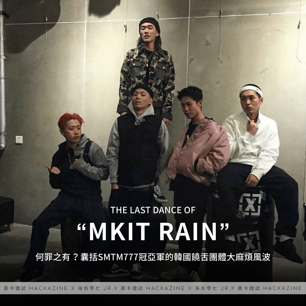 一舉奪下〈SMTM777〉冠亞軍的MKIT RAIN,不僅節目、演出邀約不斷,後續作品也廣受大眾好評,聲勢水漲船高的他們也成為南韓最炙手可熱的嘻哈廠牌。不料卻在去年10月被爆出震撼樂壇的全體抽大麻事件,爾後成員們也承認過去曾抽過大麻。如今雖暫停一切演藝活動,但恐怕在思想保守且對藝人相當嚴格的韓國已無法挽回形象。