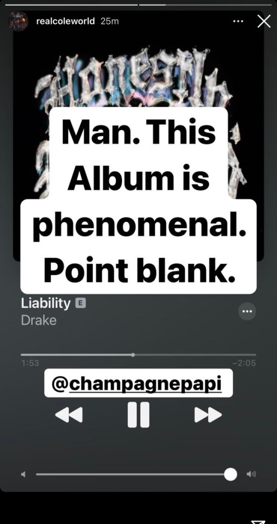 撇除流量 – 因為流量對 Drake 來說就像水或空氣,若他繼續做像 OVO 廠牌風格的作品,其實就跟沒做差不多,不管成績或流量有多好,那是 Drake 的基本盤。他就像 Stephen Curry,該拿的榮譽都有了,只缺少一些關鍵性的元素 - Finals MVP(有突破性的專輯)Drake 已經好幾年沒有推出足以撼動整個嘻哈環境的專輯了。
