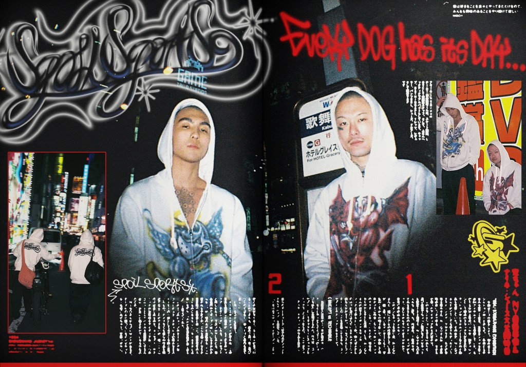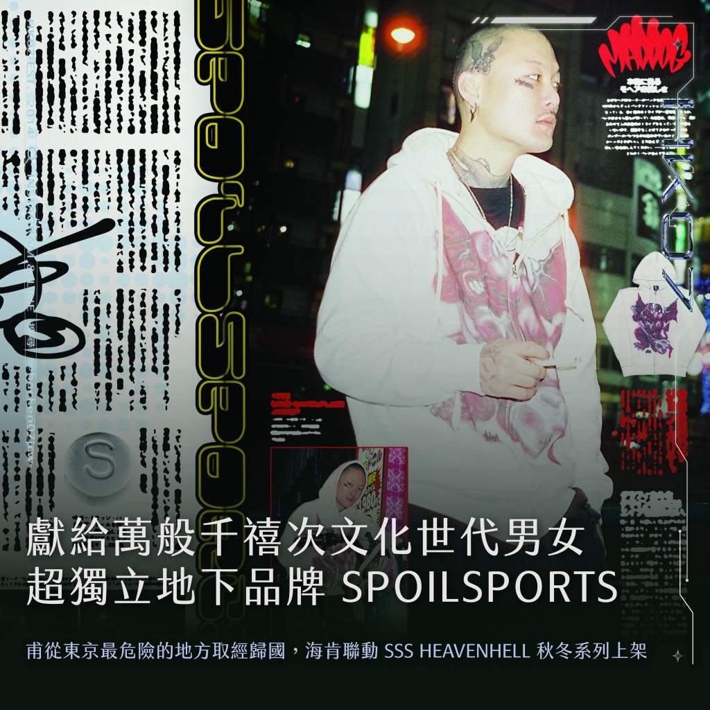 本季出品 SSS(SPOILSPORTS 簡稱)團隊前進歌舞伎廳街頭,為一系列商品拍攝視覺與 Lookbook,視覺設計更邀請 Blindvice 繪製日雜感畫面,更隨性邀請「有感覺」的朋友當品牌模特,卻也凸顯品牌顯性象徵的「個性」—不為做而做、只隨感覺而行,不經意間,已成為了台灣地下服飾品牌中的亮眼存在。