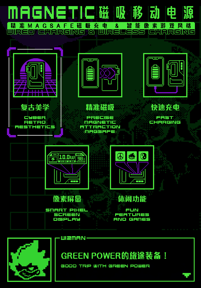 今年最新出品的大飛社周邊還包括延續 Mini Beeper 設計感的磁吸式行動電源,可依附在手機上,螢幕更內建遊戲、當下充電功率,具備 10000mAh / 22w 的快充功能。