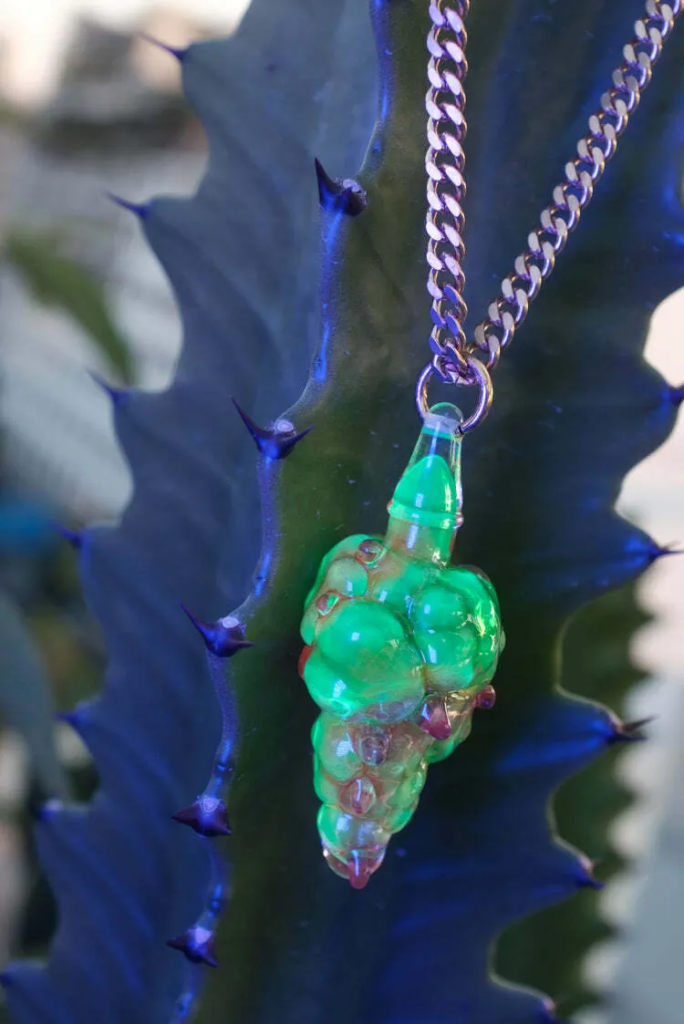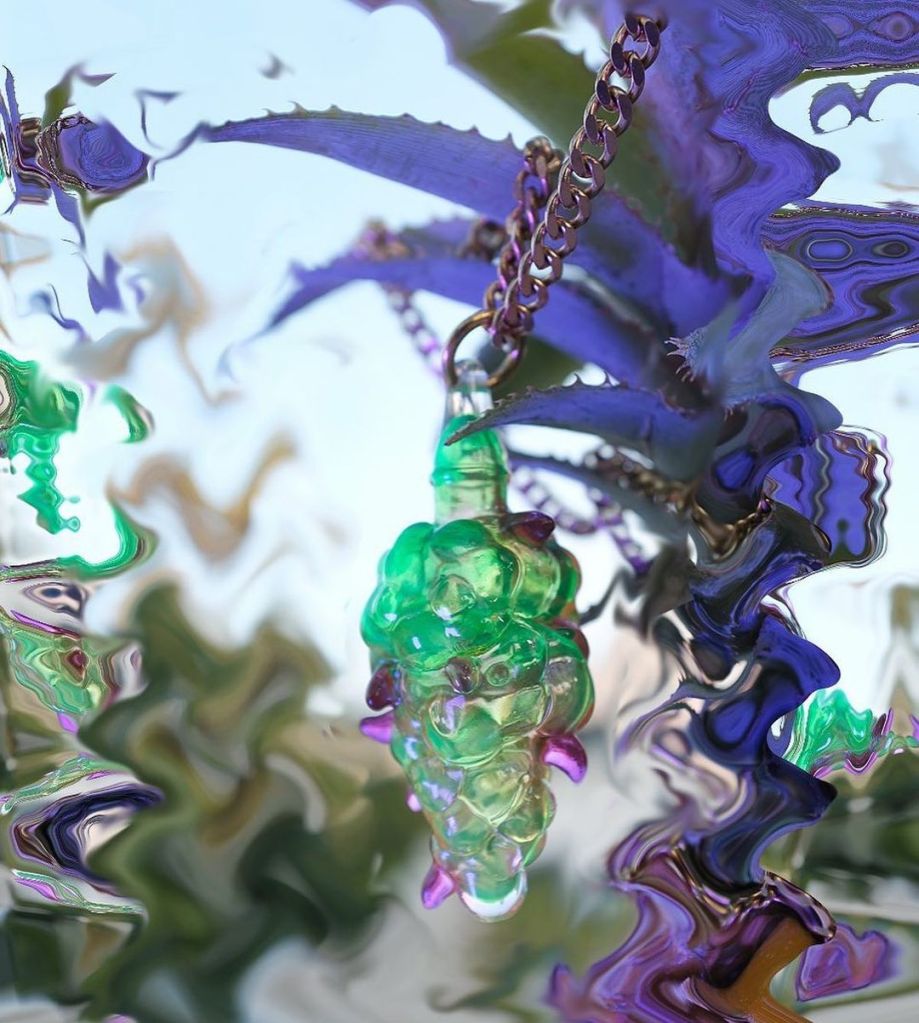 另一款被稱為燒仙草的螢光吊飾,翻玩大麻品種 Purple Haze 般的夢幻紫綠呈現,推薦給所有 420 同好與大飛社粉粉們收藏。