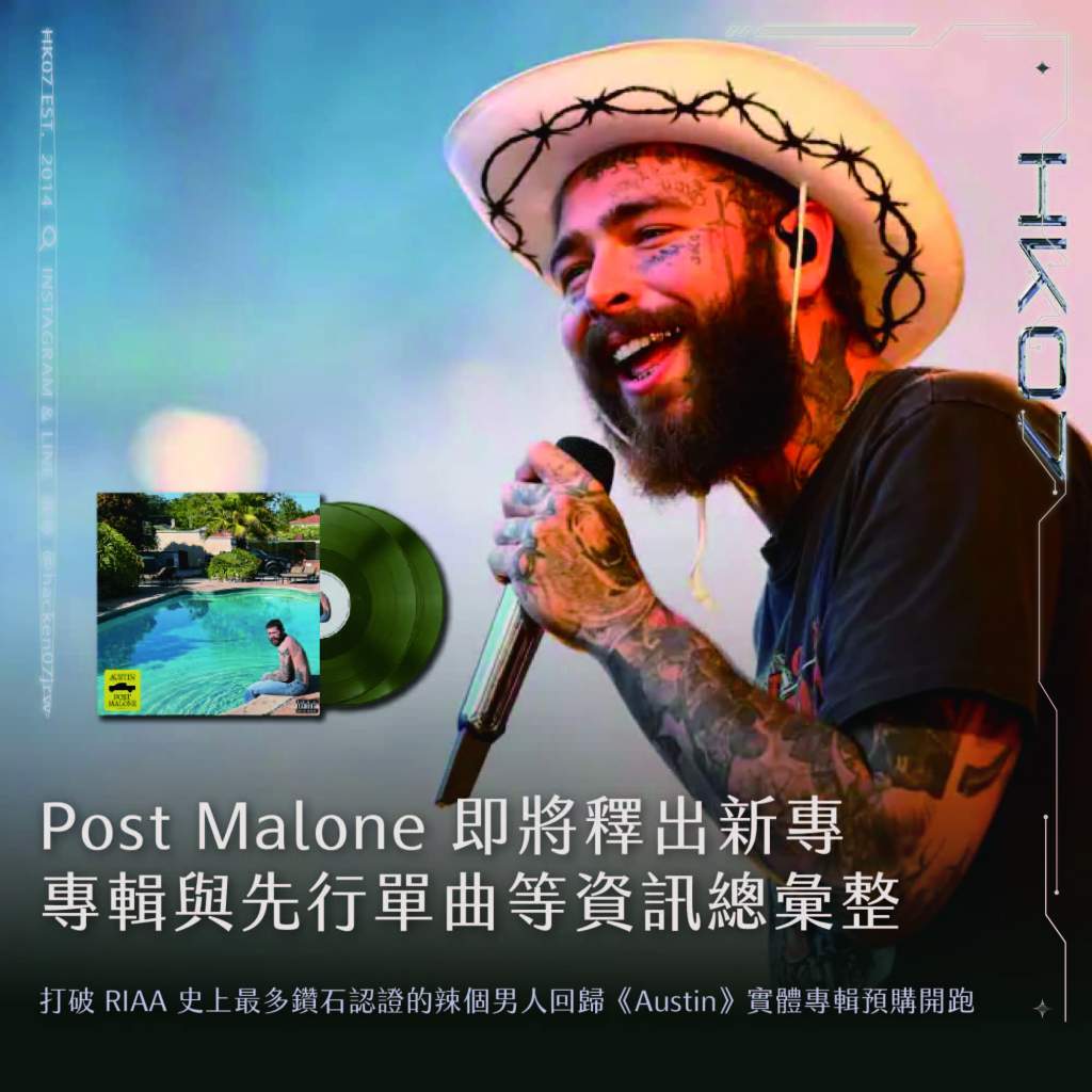 Post Malone 即將釋出新專,專輯與先行單曲資訊總彙整:海肯商城《Austin》專輯預購開跑