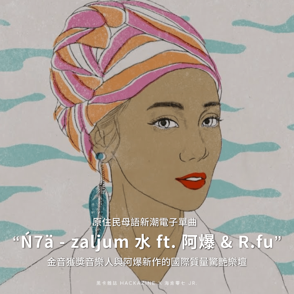 今年第11屆金音獎以《Panorama》獲 最佳電音專輯 的新生代女製作人 Ń7ä 與發行《Kinakaian 母親的舌頭》奪得今年金曲與金音最佳專輯,成為 台灣首位連奪金曲與金音最佳專輯 的音樂人 - 03年發跡至今的排灣族女歌手 阿爆 合作,搭配同樣帶著神秘面紗的原住民饒舌歌手 R.fu,誕生有如日本高質感編曲與國際新潮旋律的全新單曲〈zaljum 水 (日出版)〉: