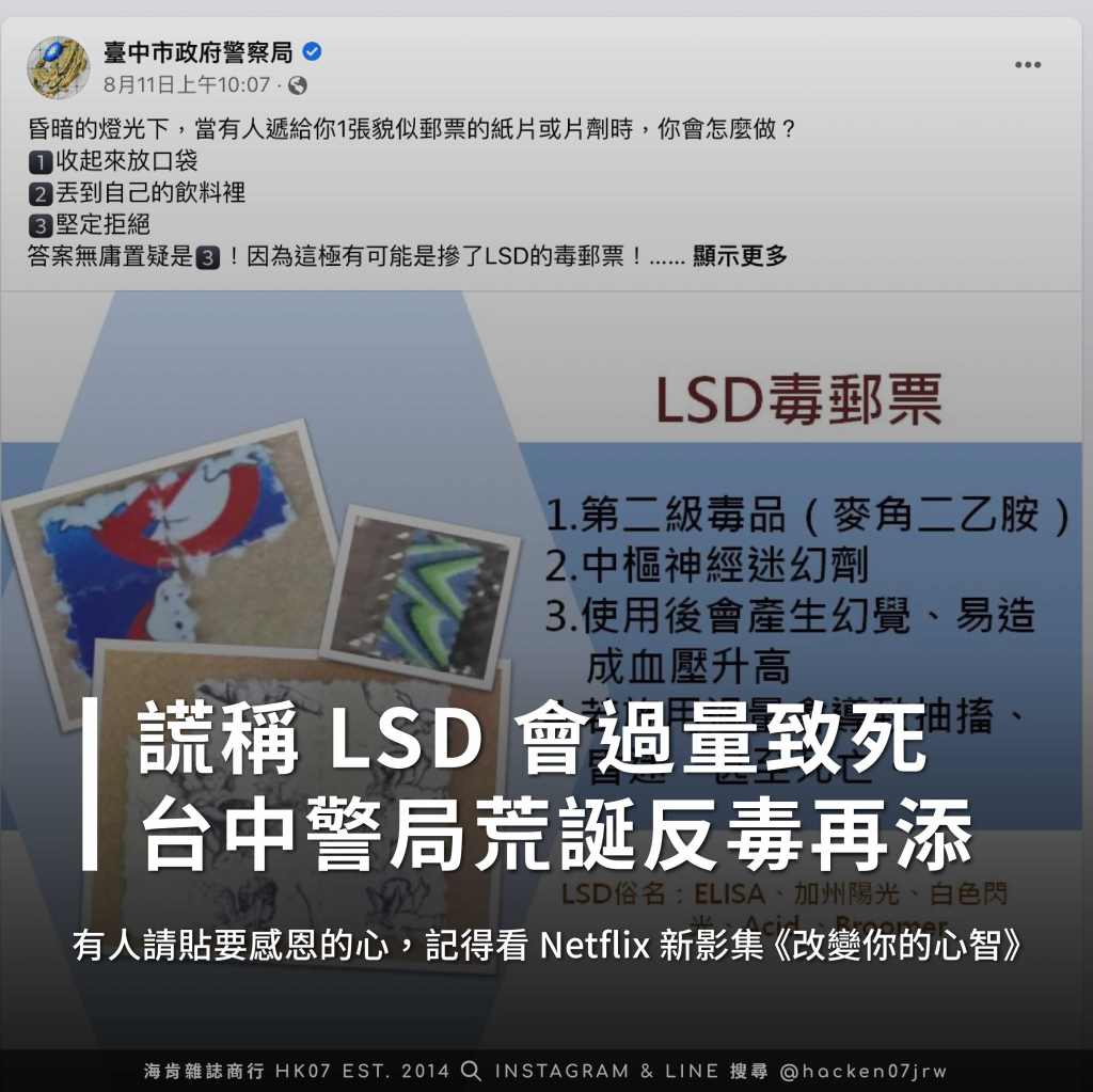 謊稱 LSD 過量致死?繼「大麻成癮性僅次海洛因」後台中警局荒誕反毒糗事再添,讓我們來好好科普正確資訊